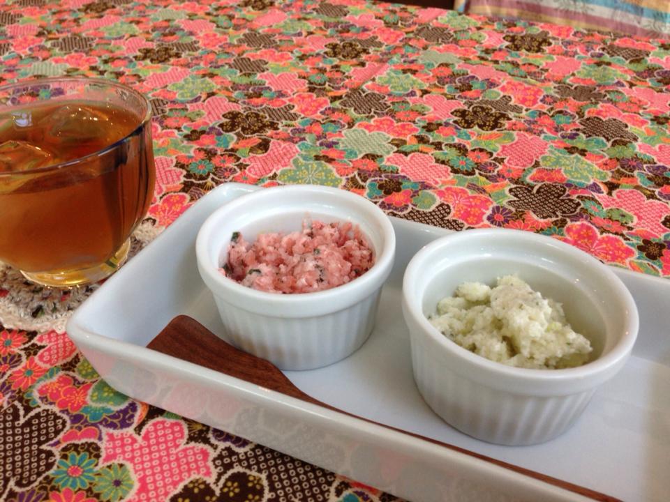 トマト&バジルのシャーベットとキュウリ&ミントのシャーベット盛り合わせ