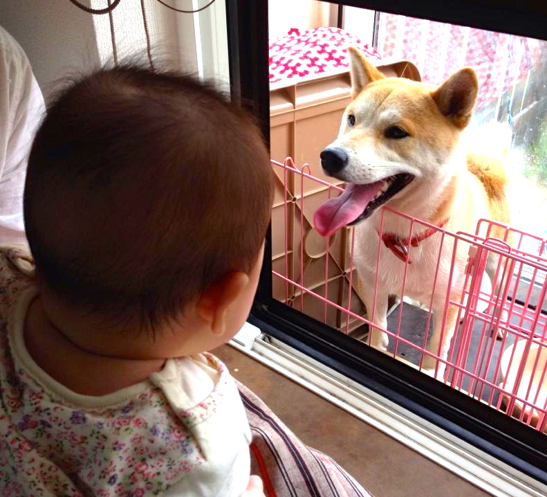 (梅吉が赤ちゃんのころから人間の赤ちゃんとも良く遊ばせていたので赤ちゃん慣れしています)
