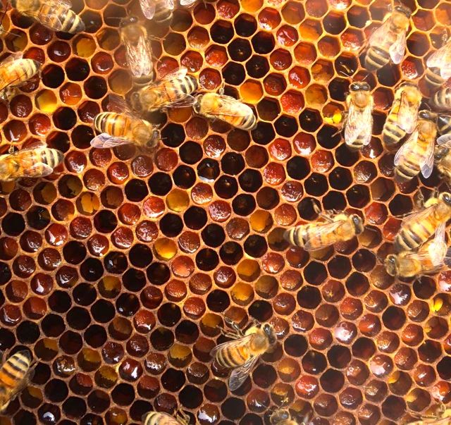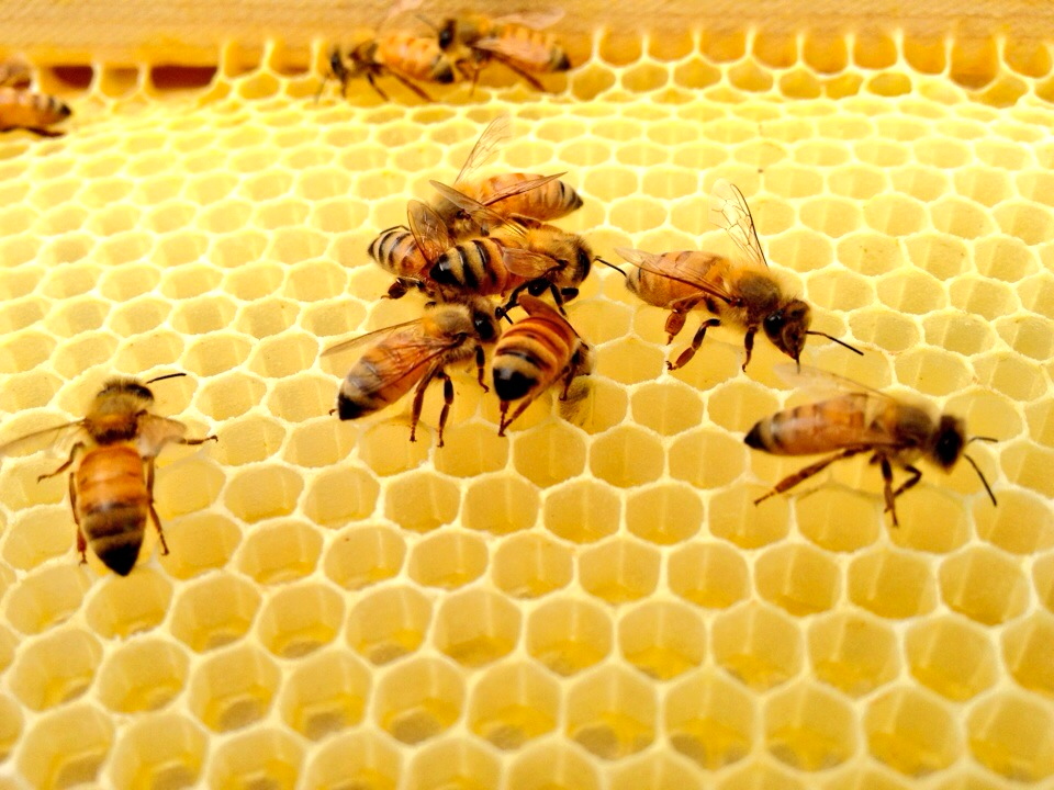若い蜂はよたよたしながら巣の中に戻り、空の巣房を探して、花蜜をいったん中に吐き出したあと、その日一日かけて、口から体内に入れたり戻したりを繰り返す。この過程で、水分を蒸発させながら、花蜜の等分を結晶型のショ糖からシロップ状の果糖に変える酵素を加えるのだ。