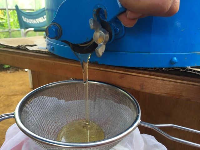 【その3。ある意味超貴重品、ある意味ゲテモノ。手絞り蜜】 終了しました!少し放っておいたらあっという間に無駄巣(こちらで用意した巣枠が満杯になり別の場所でも巣を作り出したもの)でいっぱいになってました。