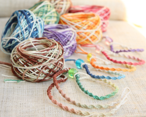 カラフルなヘンプ糸を編んでオリジナルアクセサリーを作ってみましょう。