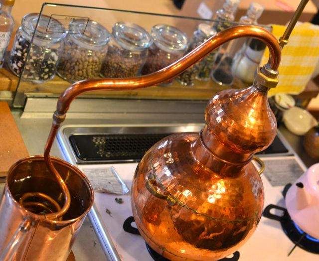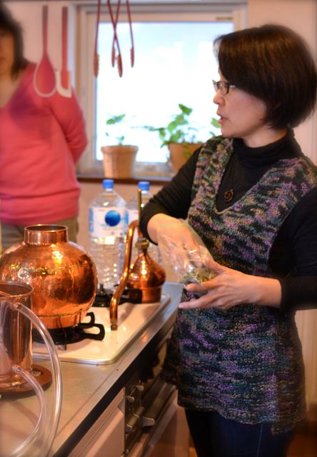 摘みたてのハーブをゆっくりと加熱し、蒸留して作る「フローラルウォーター」