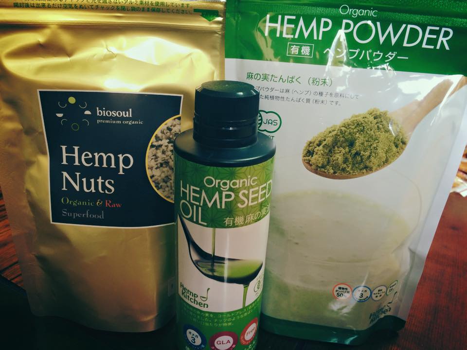ヘンプナッツ、ヘンプオイル、ヘンプパウダーのセットです。