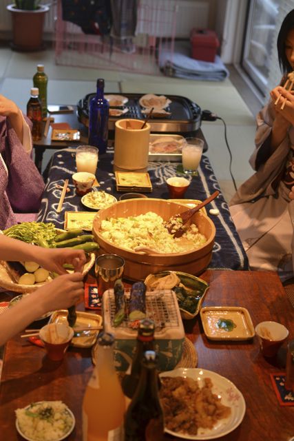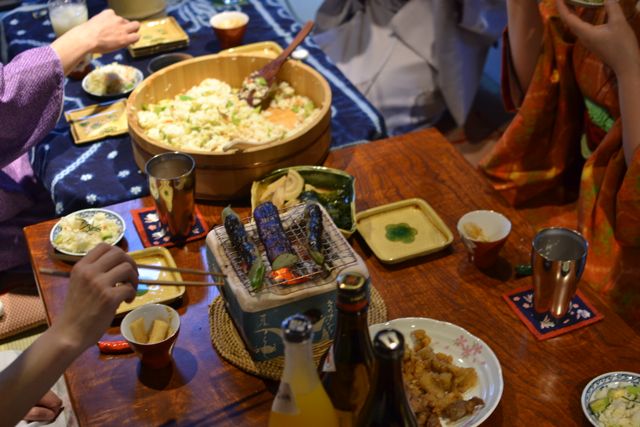 ゆきはなは偶数月に「居酒屋きのこ」に変身して、和服呑み会を開催しています。